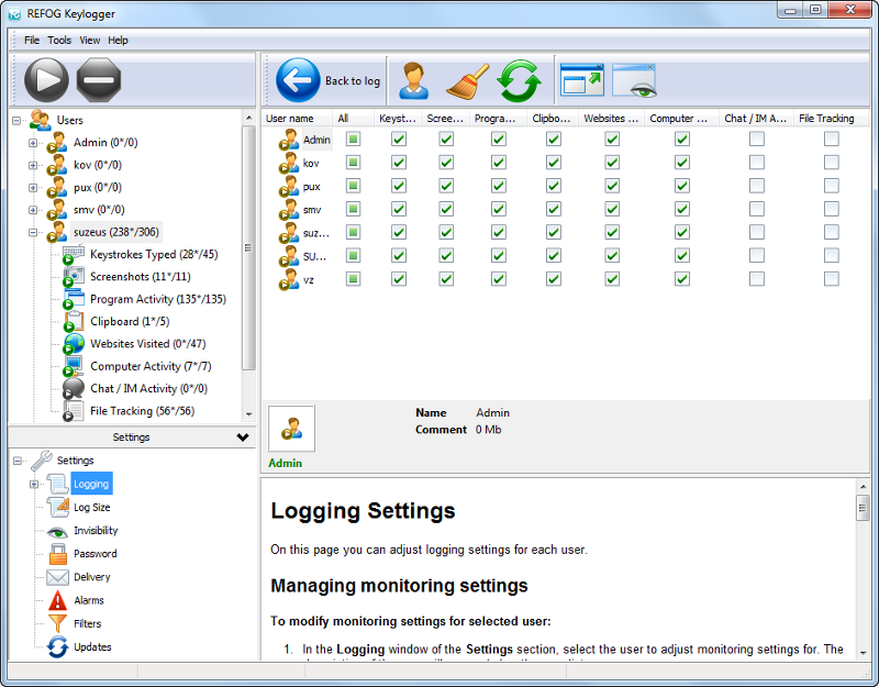 Refog Logiciel Keylogger est une solution complexe de suivi des ordinateurs locaux et distants des utilisateurs.